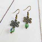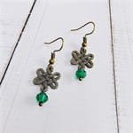 Antique gold celtic knot charms with glass crystal beads on nickel free ear hooks. Earrings are extremely lightweight and measure just about 1" long.
