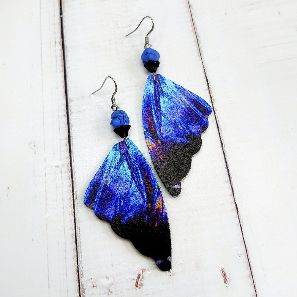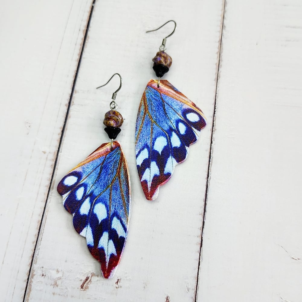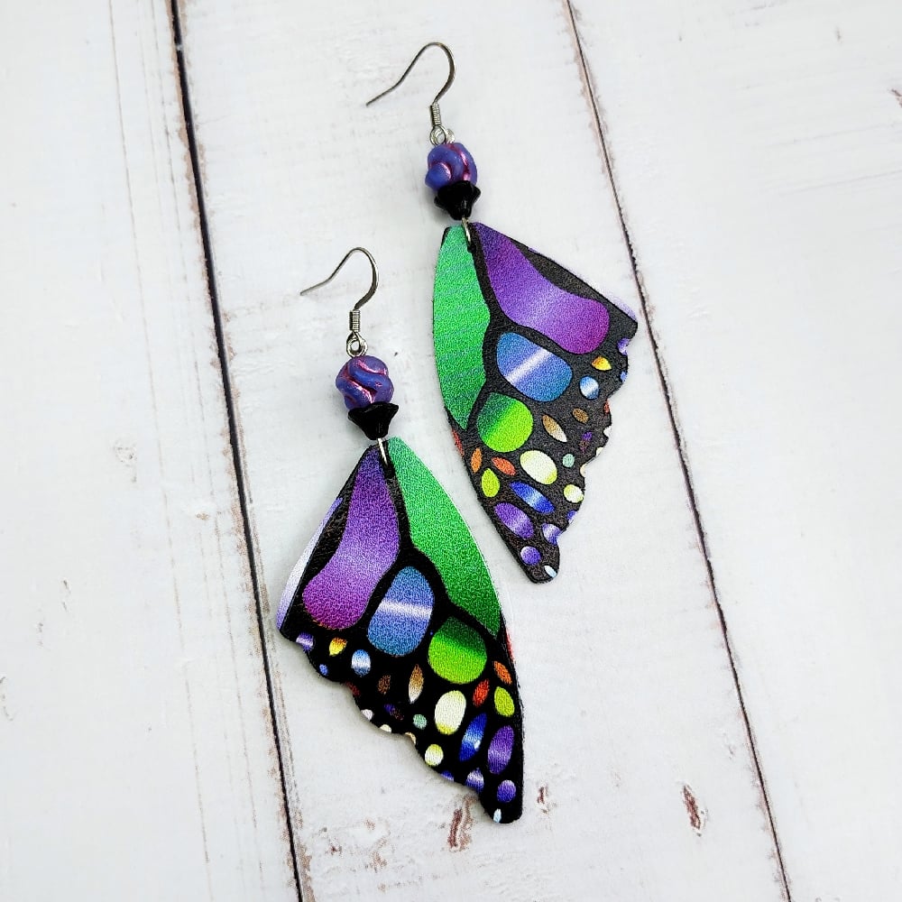 Genuine Czech glass beads with double sided vinyl charms on nickel free ear hooks. Earrings are extremely lightweight and measure just 2.75" long.