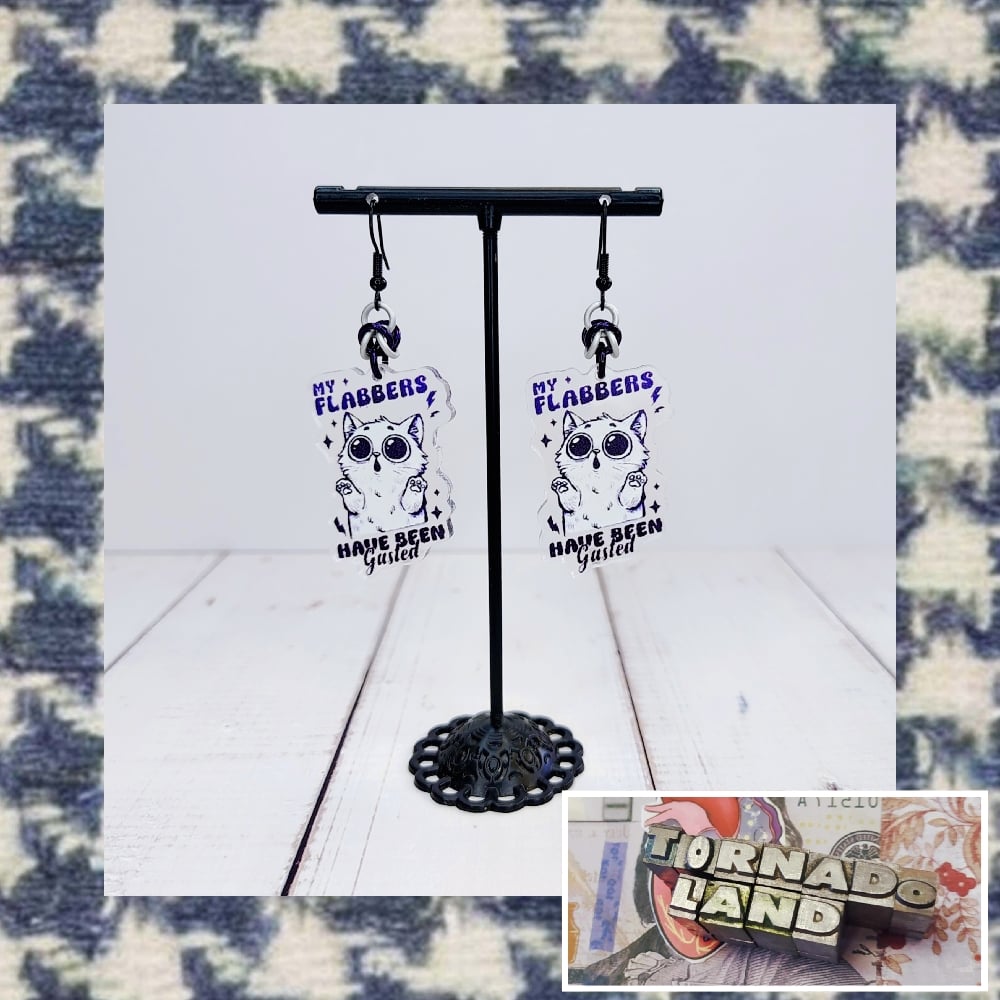 Flabbergasted Earrings Handwoven 'half byzantine' chainmaille units made from anodized aluminum rings with acrylic charms on nickel free ear hooks. Earrings are extremely lightweight and measure 2" long.