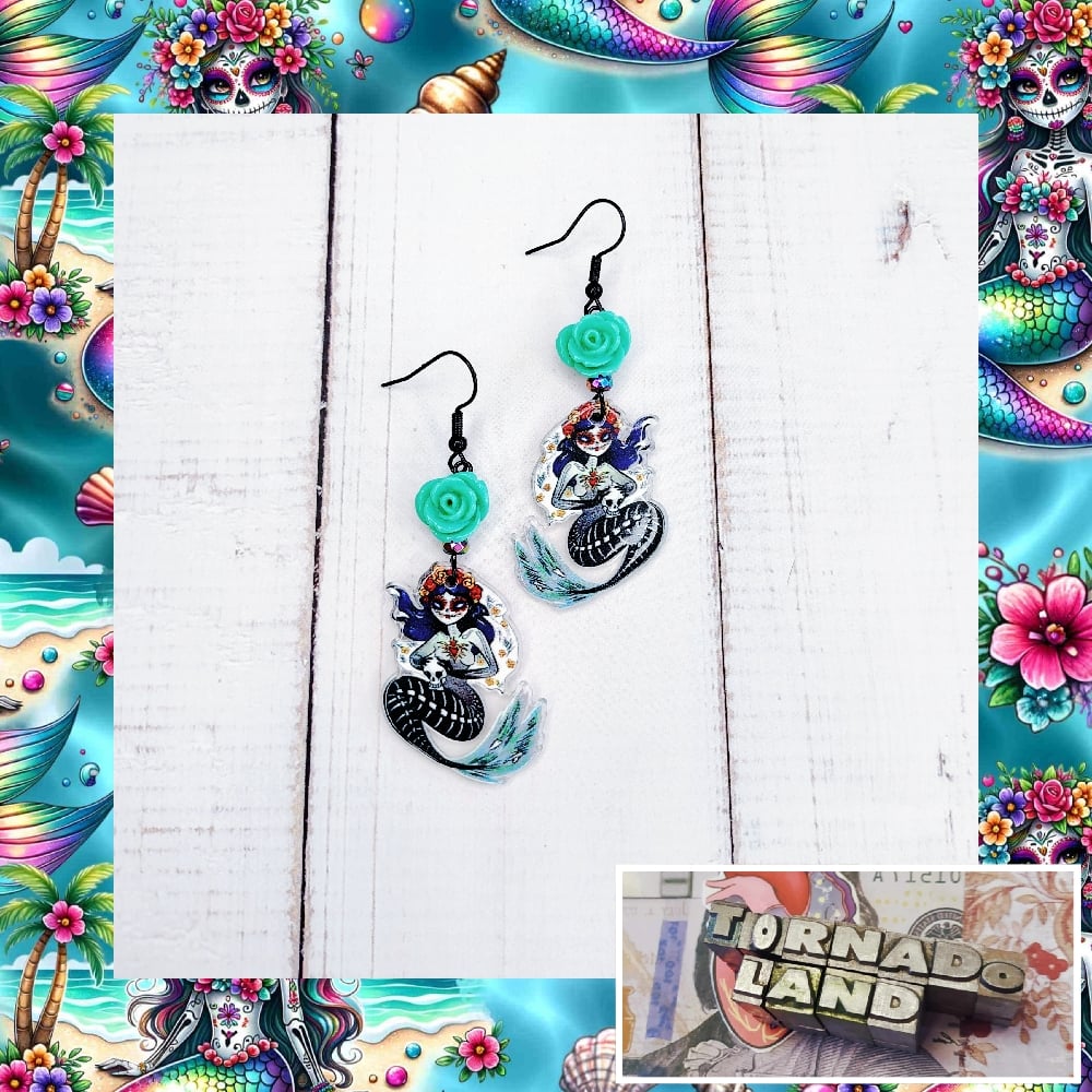 Acrylic flower beads with double sided acrylic charms on nickel free ear hooks. Earrings are extremely lightweight and measure just under 2.25" long.