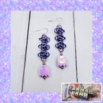 Handwoven chainmaille persephone units made from anodized aluminum rings with acrylic charms on nickel free ear hooks. Earrings are extremely lightweight and measure just over 2.25" long.