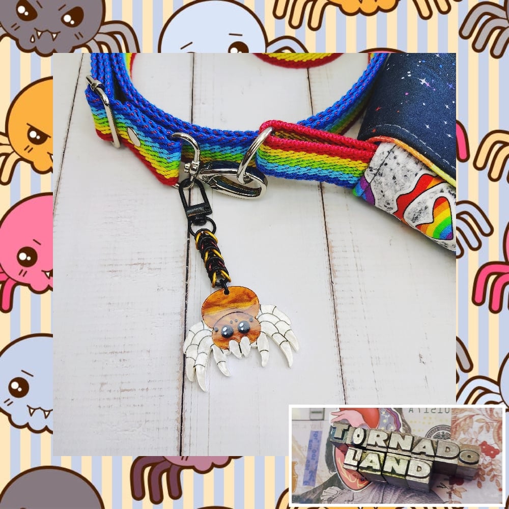 Jumping Spider Purse CharmHandwoven 'box weave' chainmaille made from anodized aluminum rings with double layer acrylic charm on metal swivel clasp. Purse charm measures 4" long in total.