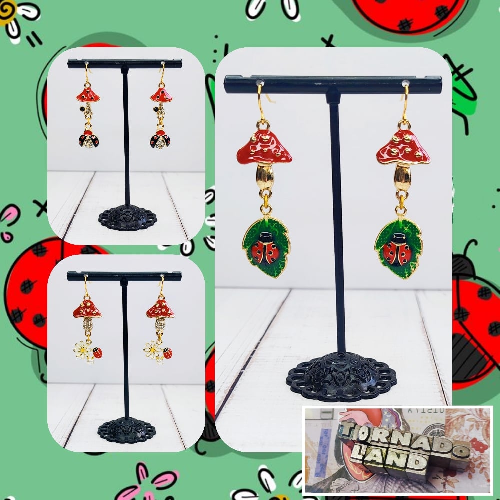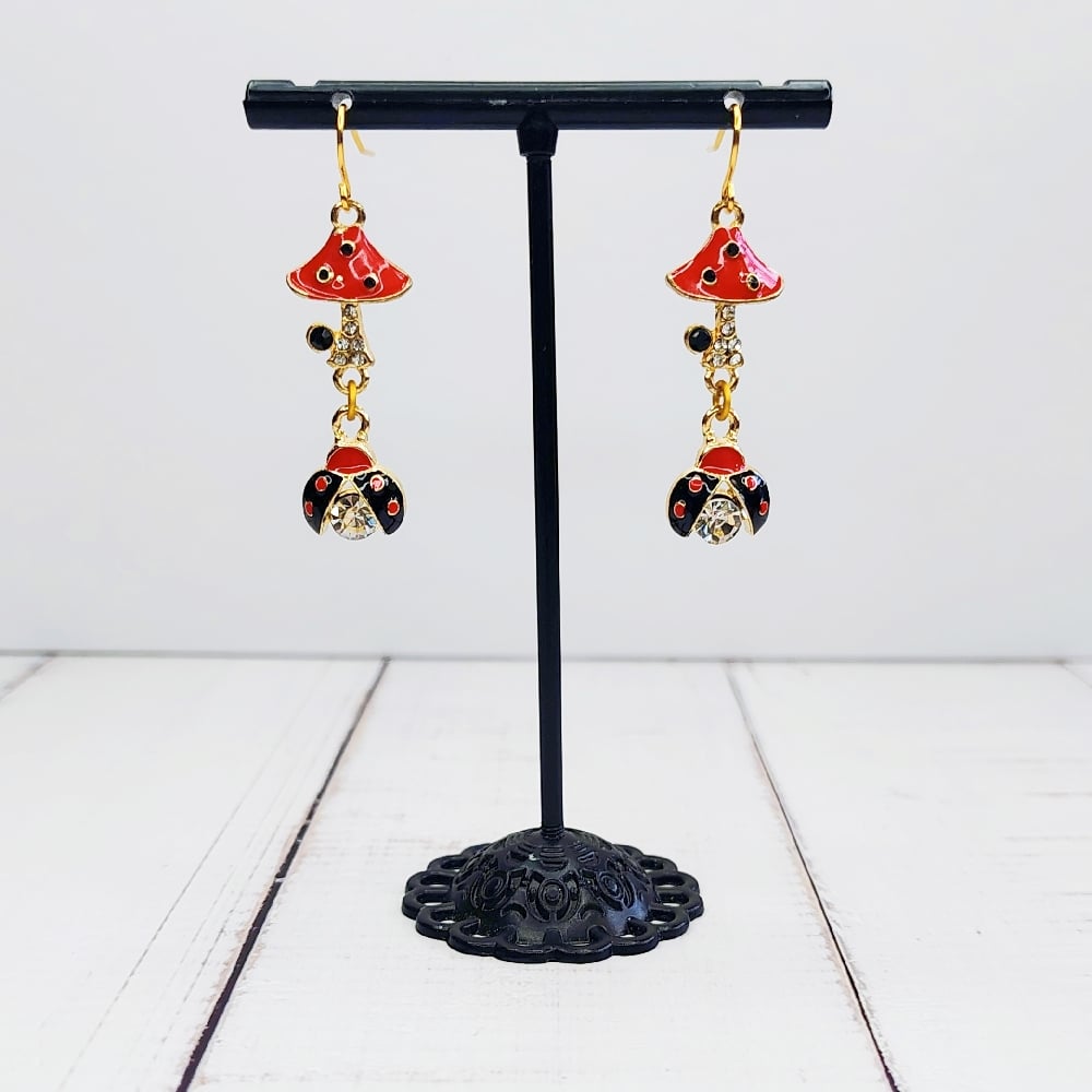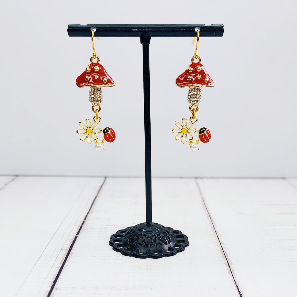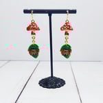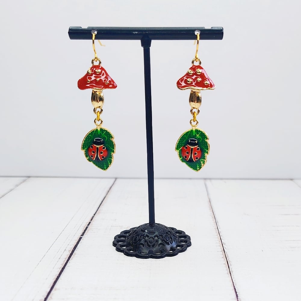 Enamel connectors with enamel charms on nickel free ear hooks. Earrings are lightweight. See drop down menu for length of each style.