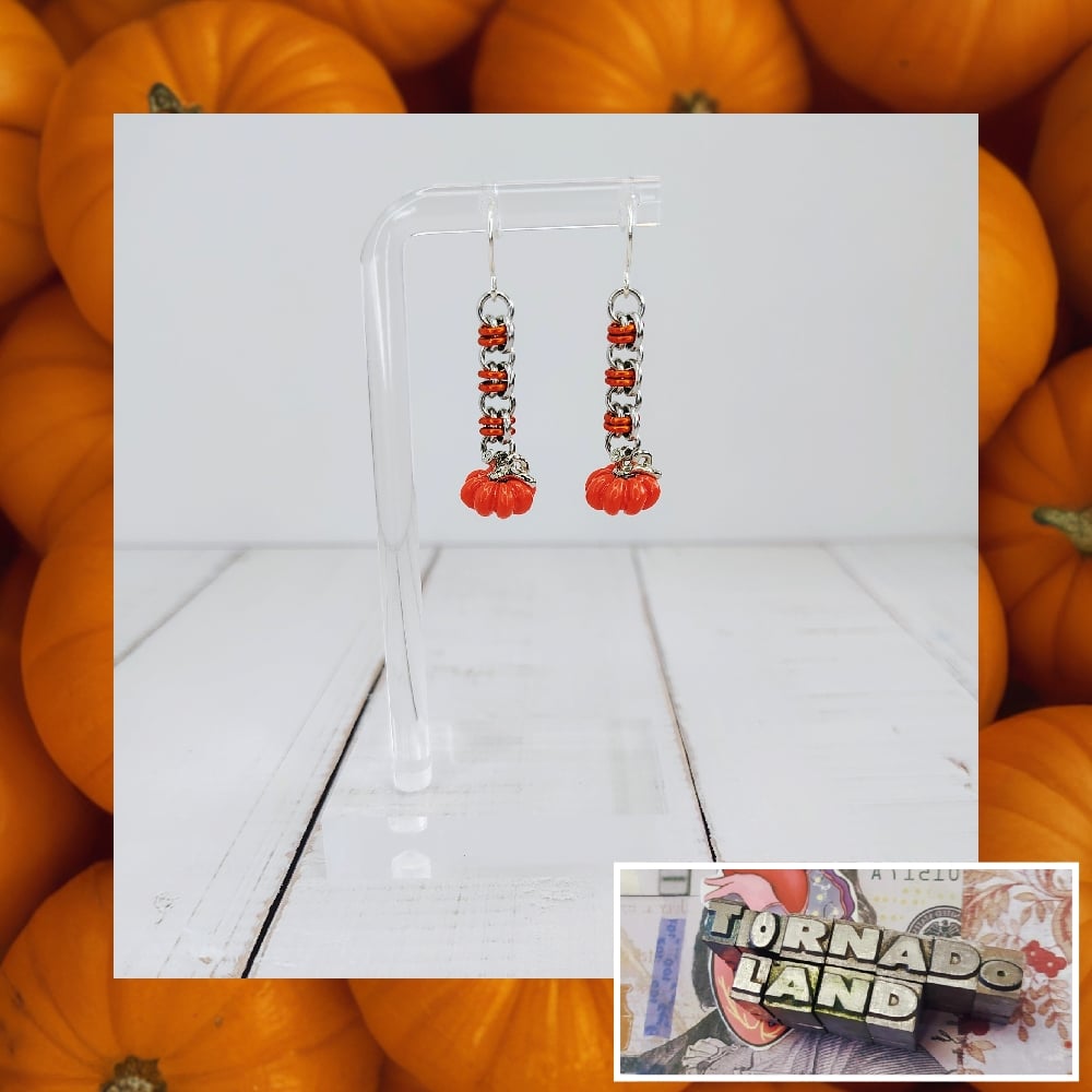 Handwoven mini 'barrel weave' chainmaille units made from bright and anodized aluminum rings with 3D metal charms on nickel free ear hooks. Earrings are extremely lightweight and measure just under 1.25" long.