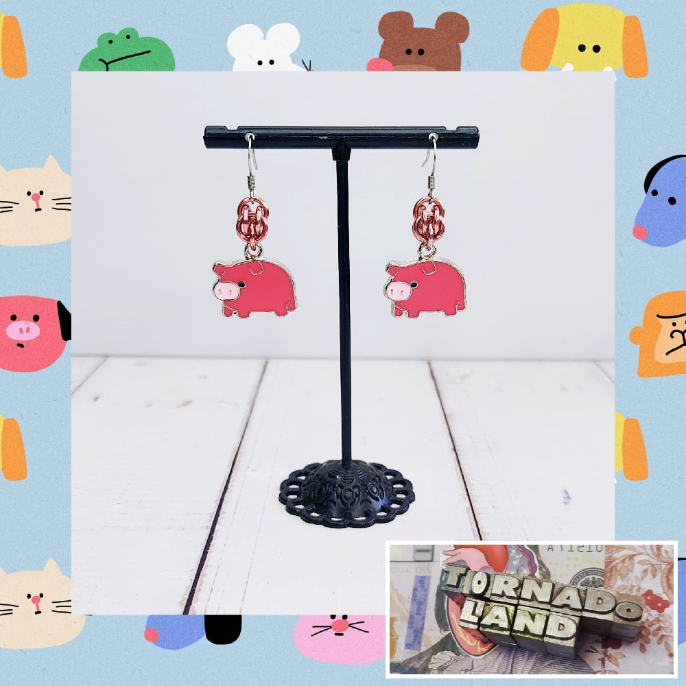 Handwoven 'sweet pea' chainmaille units made from anodized aluminum rings with enamel charms on nickel free ear hooks. Earrings are extremely lightweight and measure just over 1" long.