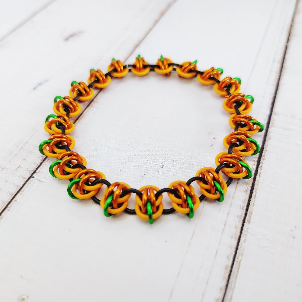 Stretchy Pumpkin Patch Chainmaille Bracelet